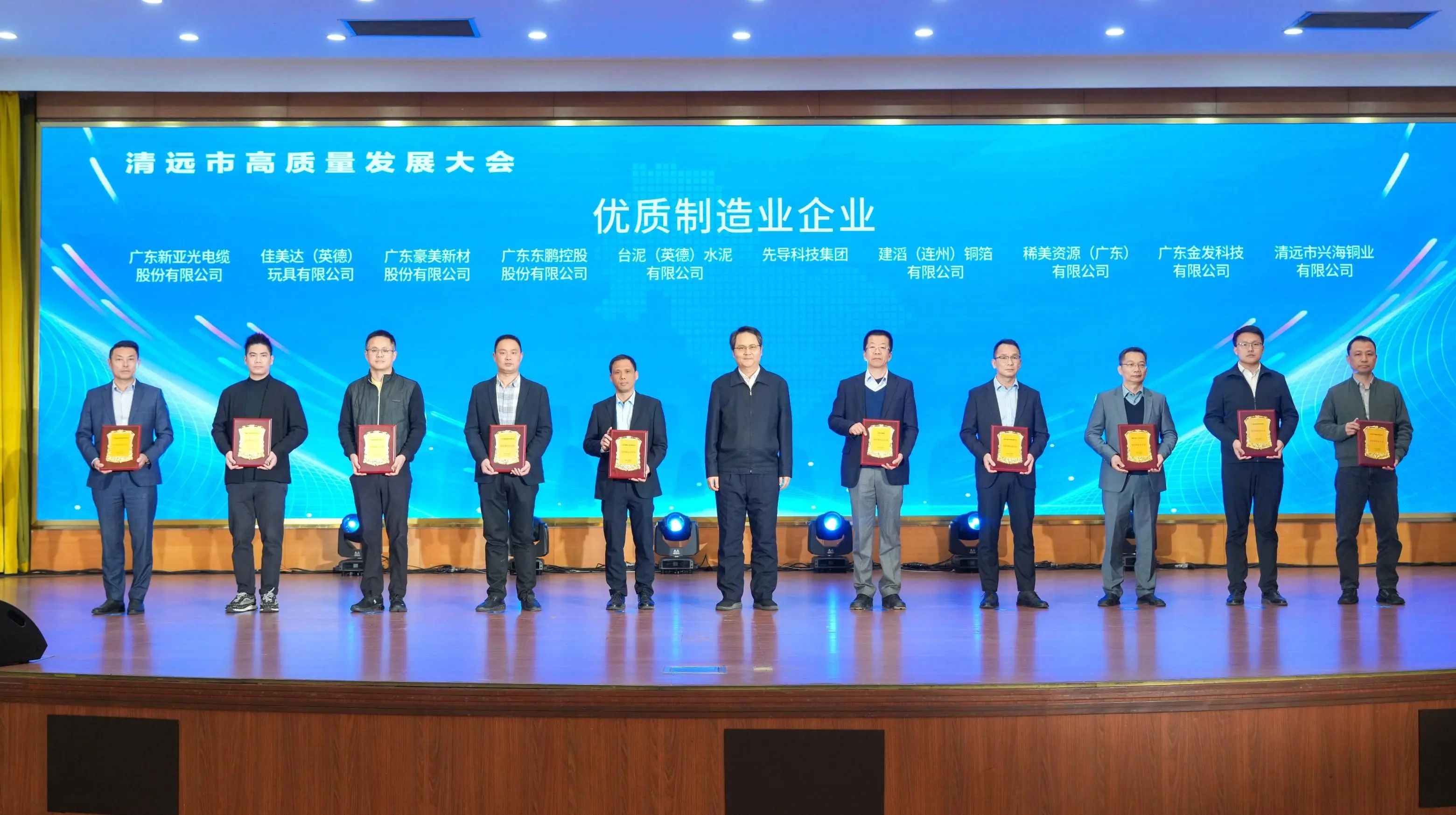 近日,廣東省高質量發展大會在穗召開。同期,清遠市委、市政府召開全市高質量發展大會,為清遠經濟高質量發展描繪奮進藍圖。會上,清遠市對50家優秀企業進行表彰,東鵬控股憑借在制造業領域的卓越表現和突出貢獻,榮膺“優質制造業企業”稱號。在清城區高質量發展大會上,東鵬清遠基地榮獲清城區稅收貢獻獎。