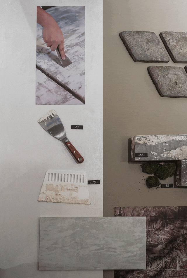 堆疊的藝術講述的是關于磚瓦成長的故事。磚塊,以其純粹的幾何形態存在;瓦片,則展現為簡潔的平面或曲面。在生產及后續過程中,被有意識地或隨意地堆疊成多樣陣列與圖案,猶如磚瓦自身在悄然生長。在歲月長河中,磚瓦匠人們憑借精湛的工藝,用磚雕或者泥塑的方式,通過象征性圖騰元素的融入,將對生活的美好期許與記憶裝飾在建筑上。磚體經燒制后,其孔隙與凹凸紋理隨時間而變化,顏色漸顯深淺斑駁。歷經風霜雨雪的長期侵蝕,磚面留下了時間的痕跡。青苔等自然生物在墻縫間生長,為磚墻添上了新的色彩與圖案。