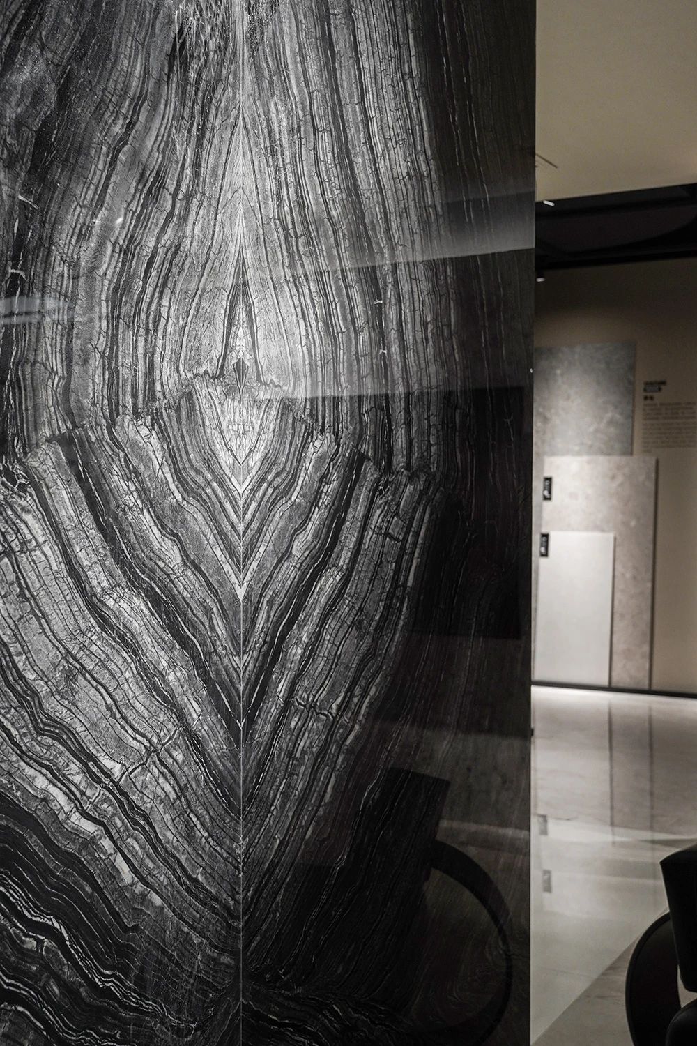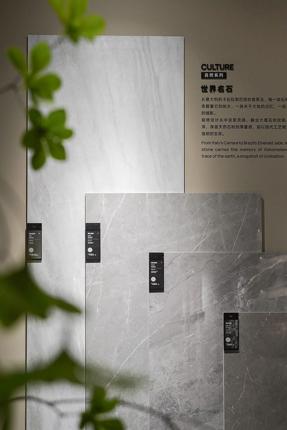 IW自然系列通過理石、巖石、玉石、木材四大產品線。巧妙移植自然元素至室內,打造藝術化自然空間,讓人在日常中盡享寧靜與美好。自然系列展示空間采用錯落有致的展示形式,造型層次豐富,給人以深入自然的感官體驗與視覺享受。自然系列展廳中央的開放式溝通交流區,在這里暢聊空間的無限可能,盡情想象擁有自然系列的理想生活。材料選材模塊是屬于設計師的靈感之源,全套自然系列的小樣磚幫助設計師和參觀者更好的理解產品、組合產品,為塑造向往空間提供源源不斷的創意源泉。在當代系列產品展示空間中,IW深入挖掘經典材質的精髓,如工藝細節、經典色彩搭配等,同時結合現代審美趨勢與技術手段進行再創造。